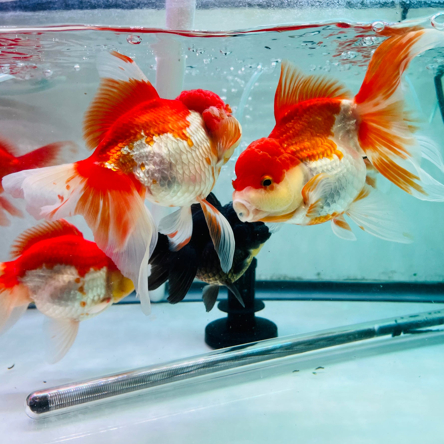 The oranda goldfish is a fresh water fish of the Cyprinidae family. These fish are a product of selective breeding and are closely related to the common goldfish