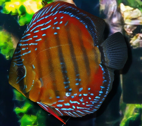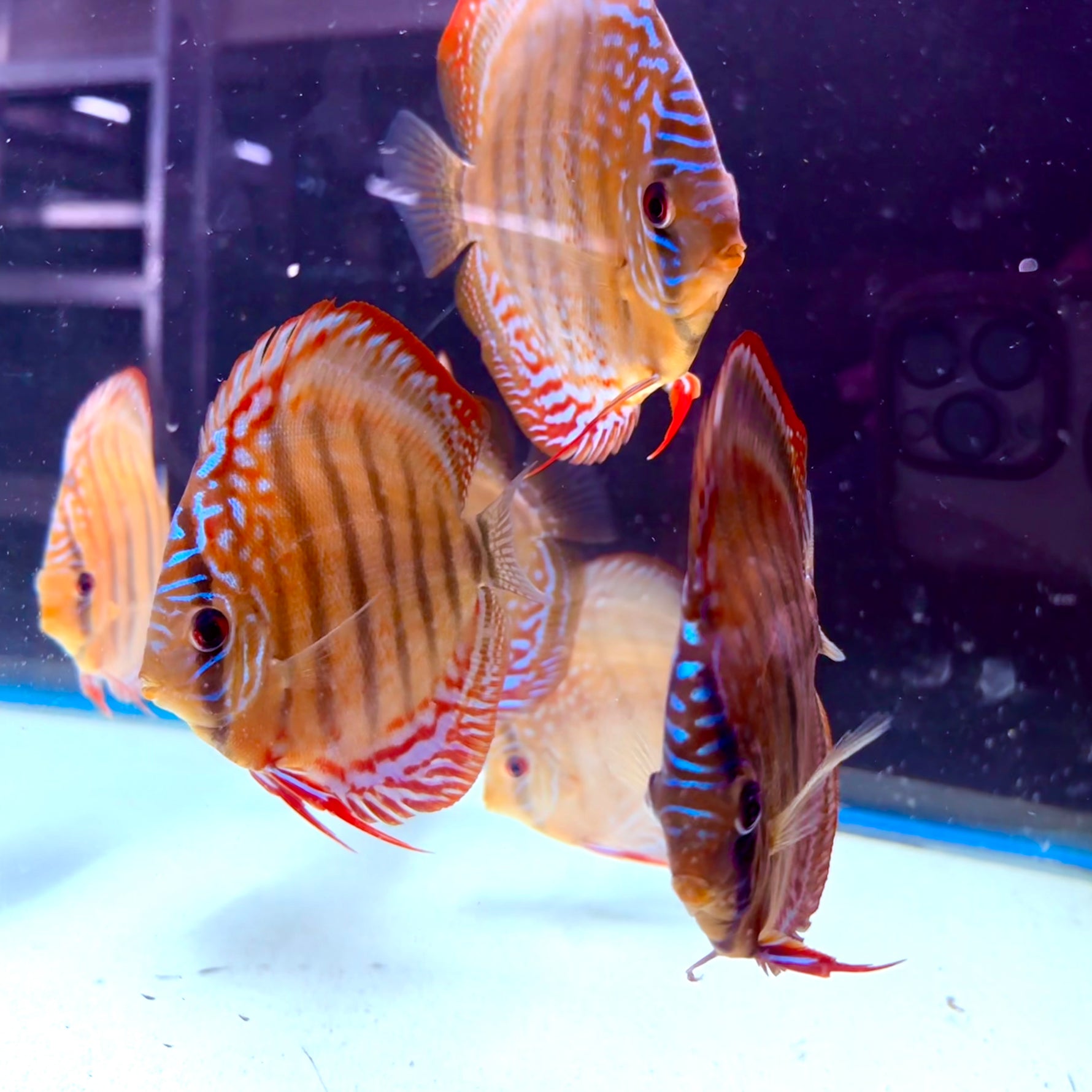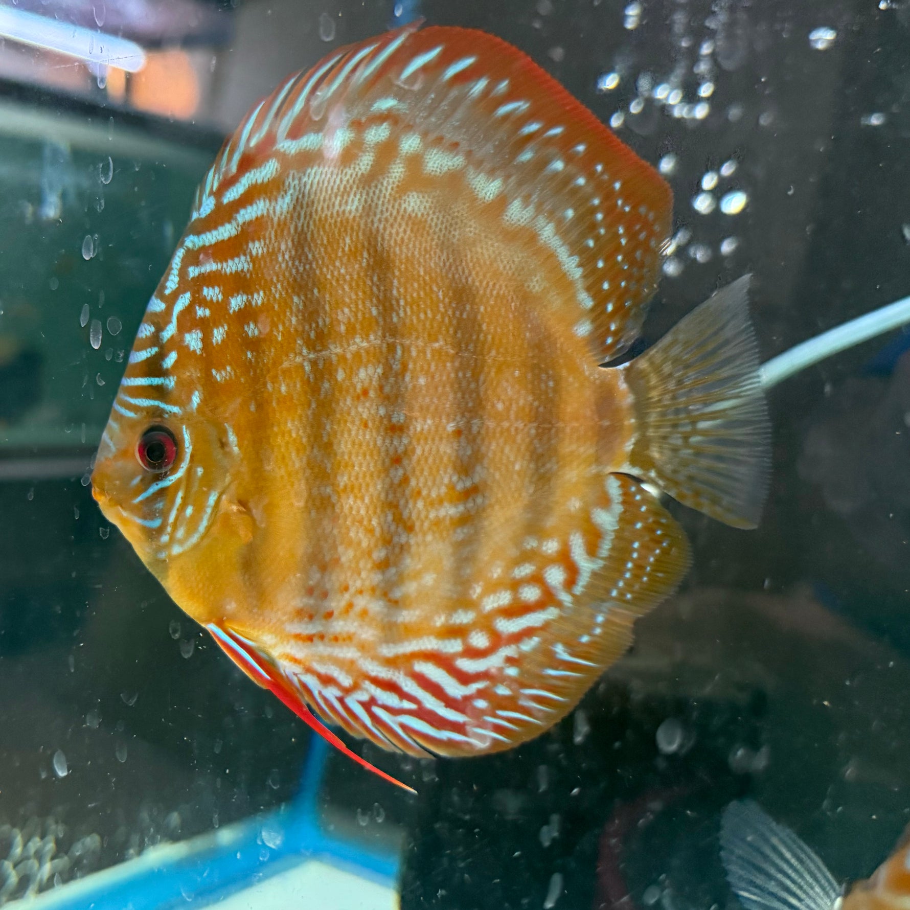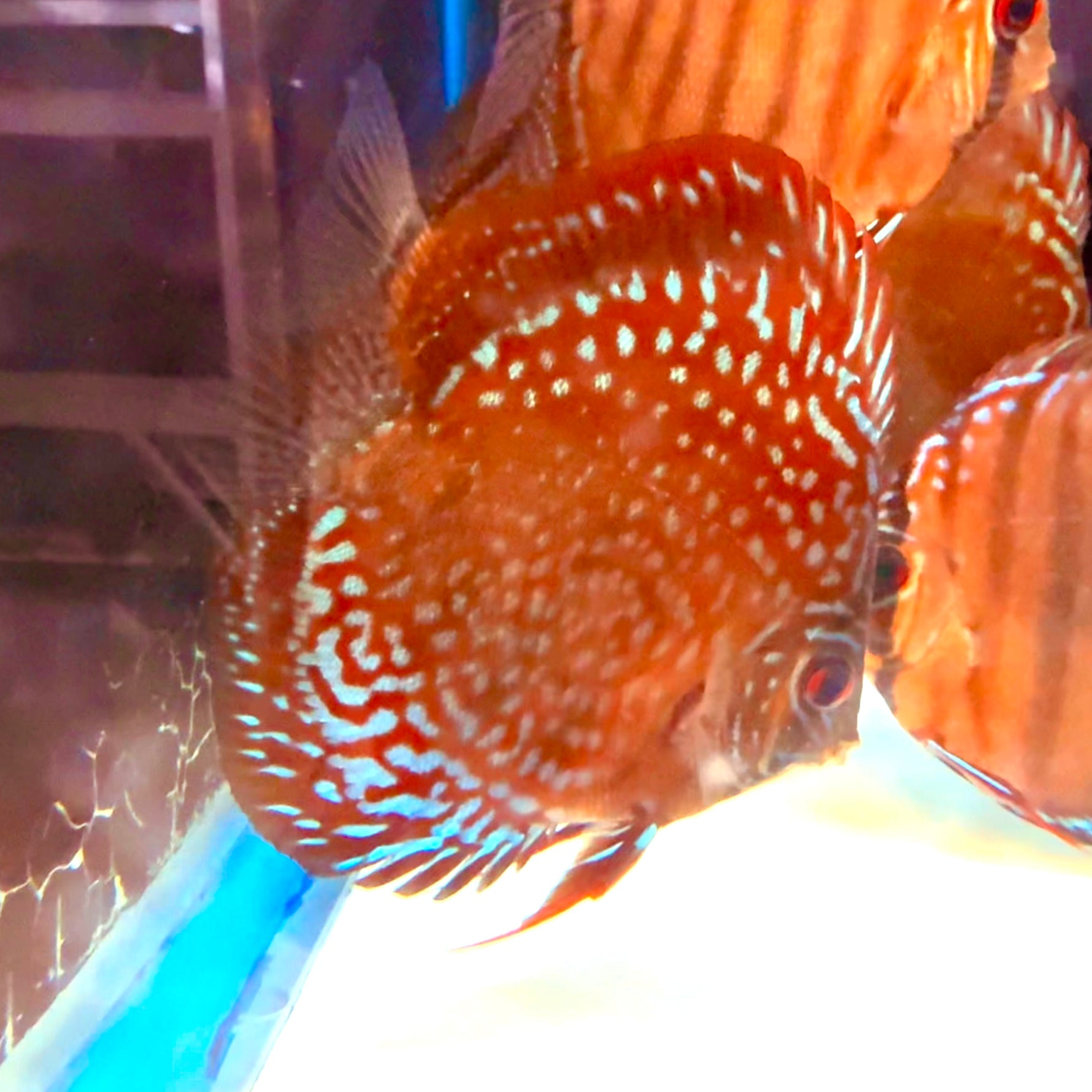Precio unitario / porRed batata and jacarecappa is a beautiful strain and has a wild look. Texas Aqua is offering F3 Red batata and jacarecappa. We do not use RO water on any fish. Just declorinate city Tap water. if you Remember the serene feeling of crisp winter evenings as you gazed dreamily into a dancing campfire and roasted marshmallows on a charred stick? Now you can bring that glowing campfire indoors all year long. This discus combines the warmth of the blazing flames with the brilliant radiance of drifting snowflakes and snow-covered branches to provide you with year-round peaceful campfire moments.