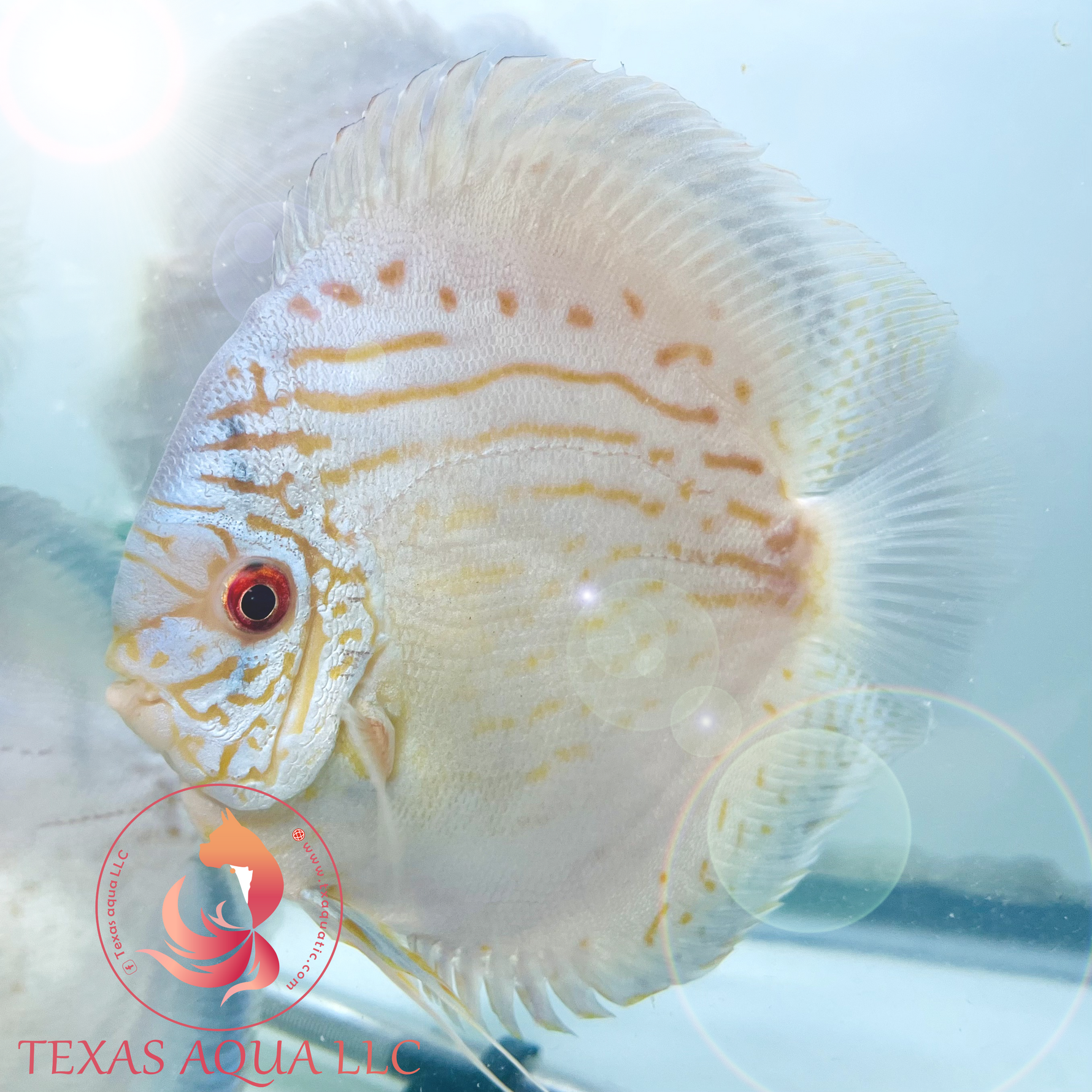 Precio unitario / porReflection D Discus from Discus Global, a master breeder in Malaysia. Texas Aqua is distributing this fish from Kefeng( Kefeng is Winson’s Son). This is one of the many strains of discus that through genetic mutation have produced a reproducible color variation of the Discus fish. This strain Discus aquariums should closely resemble their natural Amazonian habitat with plenty of plants and branching root or driftwood. Water parameters should be very consistent with a pH near 6.5 to 7.2, temperature between 80° to 86° Fahrenheit with low to medium water currents. Discus can thrive in a wider range of water parameters as long as the changes are not sudden and the fish has adequate time to adjust to changing parameters. Reflection D Discus should not be housed with aggressive or boisterous fish species or in aquariums with intense lighting or strong water currents.