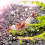 Precio unitario / porRed Rili Shrimp make a striking and dynamic addition to a freshwater aquarium due to its beautiful red and translucent white coloration, which stands out beautifully contrasted against a dark substrate.