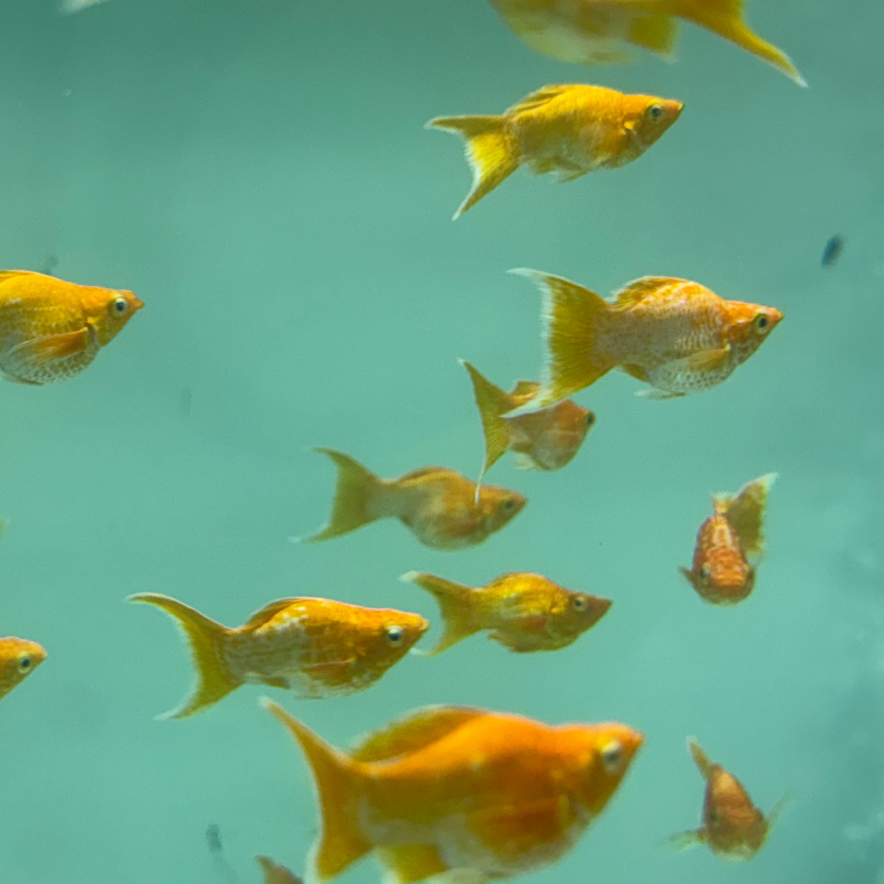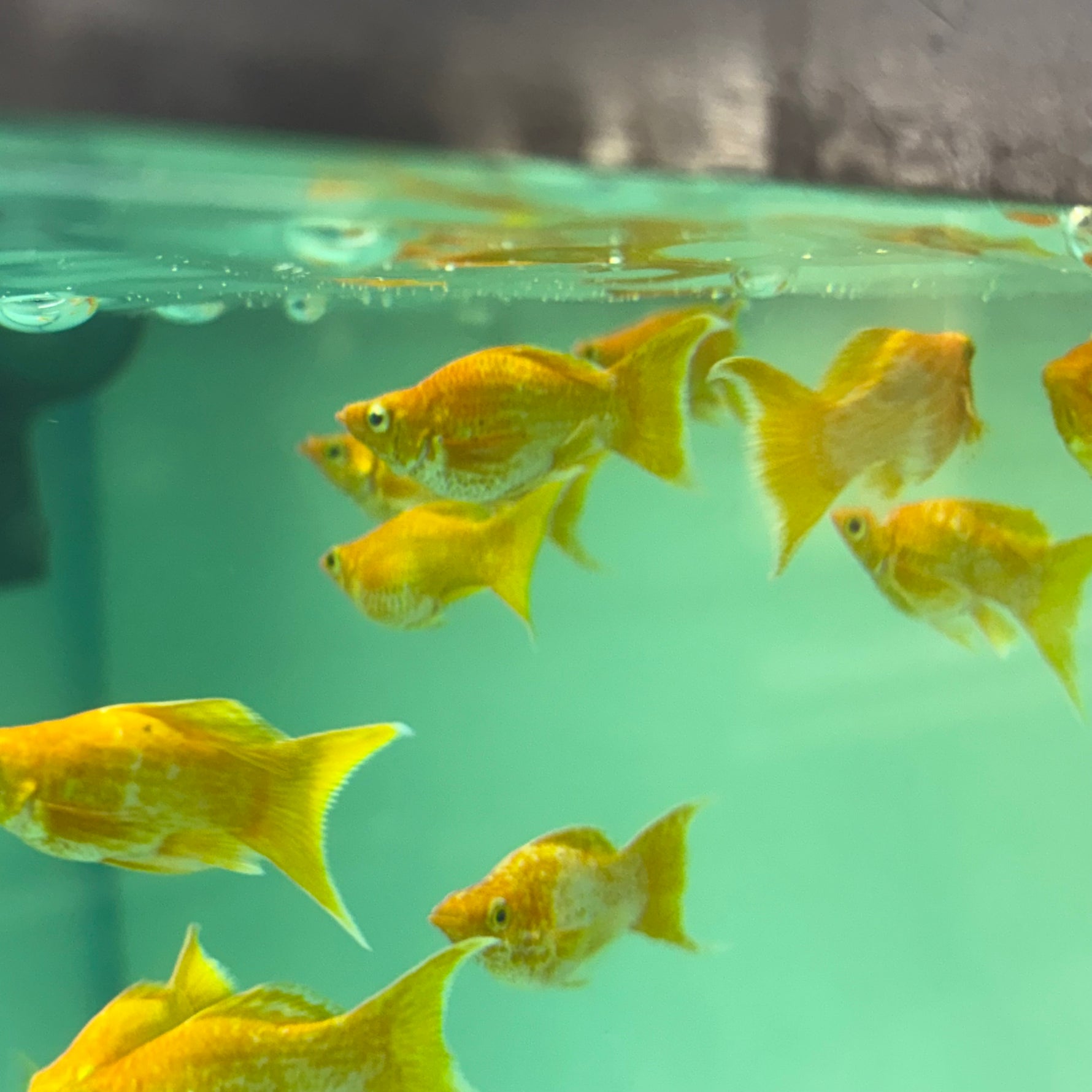 Precio unitario / porThe Yellow / Gold lyretail molly, also called the silver lyre tail molly, displays a solid yellow body. The colors on these fish jump in the planted aquarium. These live bearers also make a good contract to Glofish.