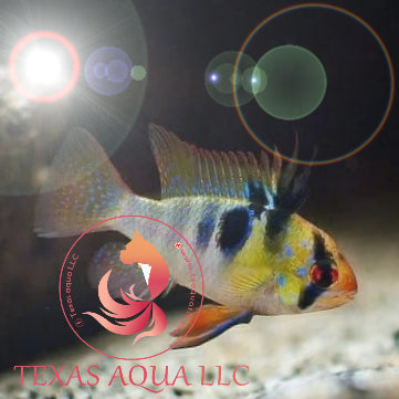 Precio unitario / porAccording to wiki, The german ram cichlid, Mikrogeophagus ramirezi, is a species of freshwater fish endemic to the Orinoco basin, in the savannahs of venezuela and Colombia in South America. The species has been examined in studies on fish behaviour and is a popular aquarium fish, traded under a variety of common name including ram, blue ram, German blue ram, Asian ram, butterfly cichlid, Ramirez's dwarf cichlid, dwarf butterfly cichlid and Ramirezi.The species is a member of the family Cichlidae and subfamily Geophaginae. The Electric Blue Balloon Ram is prized for its winning personality despite its fierce appearance. With its spiked dorsal fin, low-slung pectoral fins, Mikrogeophagus ramirezi appears to be an aquarium bulldog. However, this member of the Cichlidae family is actually one of the more social and peaceful freshwater fish. In fact, most Rams will actively swim with equally non-aggressive members of your community aquarium and are known to faithfully pair with just one other mate. The Electric Blue Balloon Ram is known for its beautiful electric blue coloration