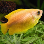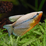 Diet & Nutrition: The Neon Dwarf Gourami is an omnivore and will generally eat all kinds of live, fresh, and flake foods. To keep a good balance give them a quality flake or pellet food as the base to the diet. Supplement this with frozen blood worms, brine shrimp, or any other suitable substitute. Vegetable tablets can be offered as well. Generally feed once or twice a day.