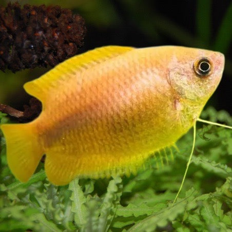 Temperament: Dwarf Gouramis are a good community fish that can be kept with other peaceful fish. Large, active, or aggressive fish can easily intimidate them. They can be timid and may hide when first introduced to an aquarium. It may take some time for them to become comfortable and behave normally.